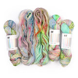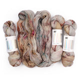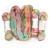 These exquisite colours which are hand dyed in Cork, Ireland. Like choosing from a candy store, you can't go wrong with any of the amazing colours. Have fun combining colours in a striped lacy shawl or brioche cowl. Many of the most popular knitting designers are using this yarn, so there is no shortage of ideas on Ravelry.